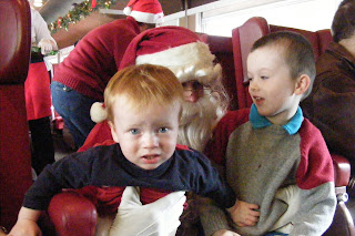 The next day (Christmas eve) Drew and Hunter opened their last advent surprise in their Lego and "mommy and daddy's" advent calendars. The Lego one was Santa Claus driving a train engine (just imagine how thrilled Drew was!) and ours was a Christmas book for each of them. Drew got "David's Christmas" (he had been asking for it all month) and Hunter got "Mouse's first Christmas". This was the day we had been counting down to all month, as we had plans to go to Nana's and sleepover. It was all very exciting, and I thought Drew's head was going to pop off from all of the anticipation.